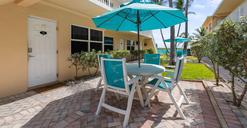 The single item that is private will be the cleaning crew storage that is inside the closet with a lock. Everything else is accessible for you as a guest. The pool, beach, grills on premises and walking towards the beach, on the sand. These are all shared with the community as they are on-site for those residing at the time.